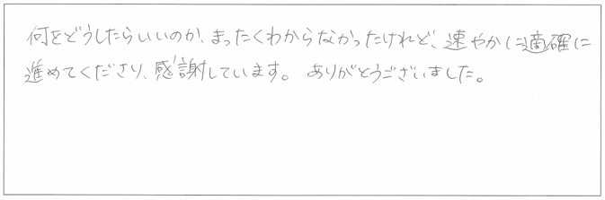 何をどうしたらいいのか、まったくわからなかったけれど、速やかに適確に進めてくださり、感謝しています。