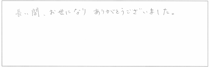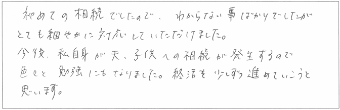 当初は想定していなかった相続手続きについても、その度に丁寧に対応していただきありがとうございました。