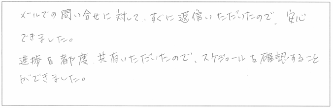 その後のメールでの連絡、応答もていねい、かつ速やかでした。