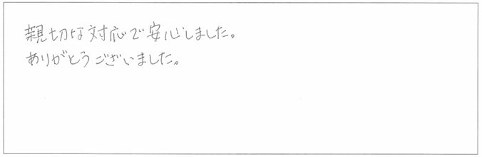 Googleのクチコミにも書かせていただきましたが、いつも丁寧で、親身になって下さいました。