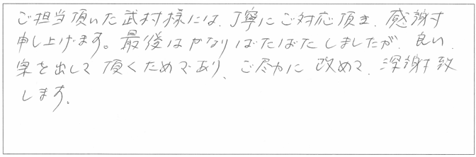 ご担当頂いた武村様には、丁寧にご対応頂き、感謝申し上げます。