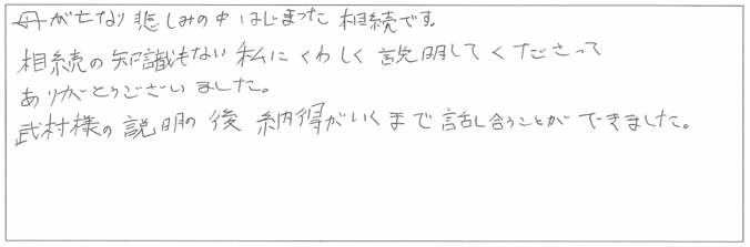 おかげさまで悲しい時でも何とかきちんと相続できました。