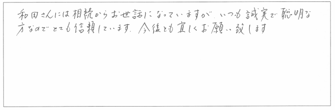 和田さんには相続からお世話になっていますが、いつも誠実で聡明な方なのでとても信頼しています。