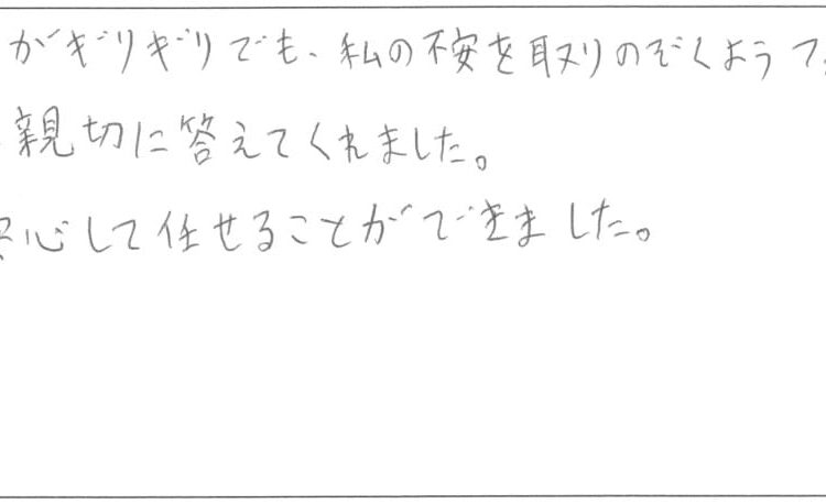 ・相続税の期間がギリギリでも、私の不安を取りのぞくようフォローしてくれました。