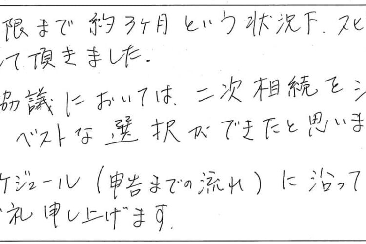 ・申告期限まで約3カ月という状況下、スピーディに対応して頂きました。