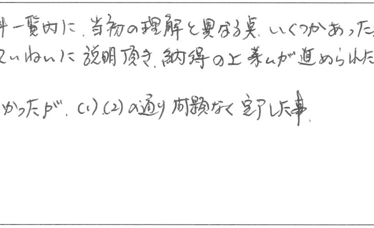 (2) 質問に対していねいに説明頂き、納得の上業ムが進められた事。