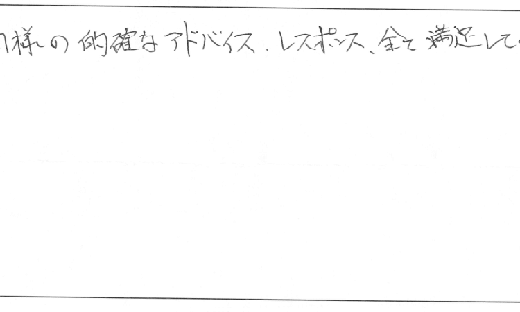 担当頂いた和田様の的確なアドバイス、レスポンス、全て満足しております。