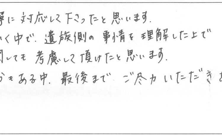 話しを進めていく中で、遺族側の事情を理解した上で分割案に関しても考慮して頂けたと思います。