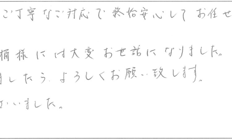 大変迅速かつご丁寧なご対応で終始安心してお任せする事ができました。