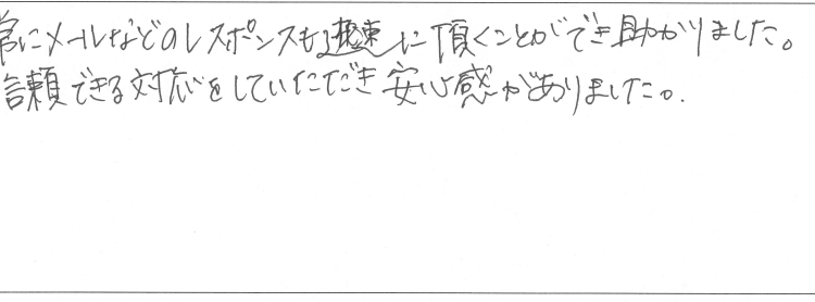 常にメールなどのレスポンスも迅速に頂くことができ助かりました。