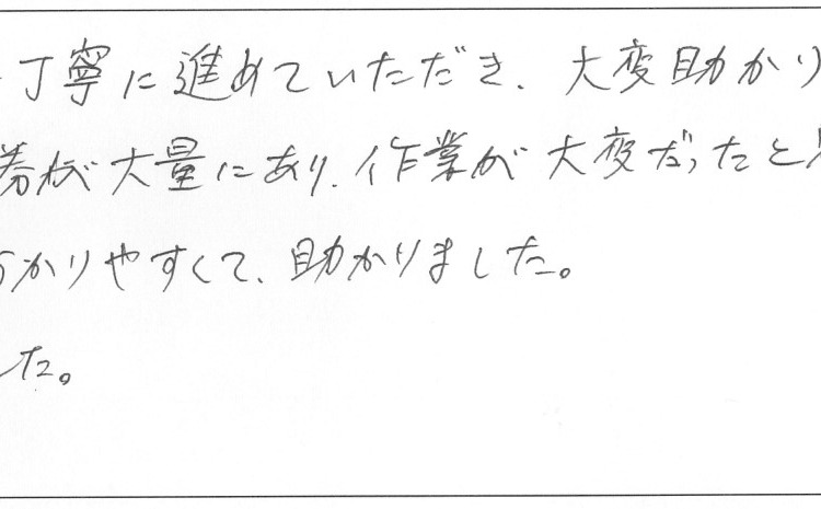 短期間でも丁寧に進めていただき、大変助かりました。