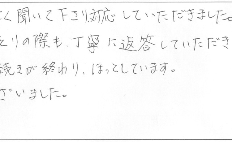 お陰様で手続きが終わり、ほっとしています。