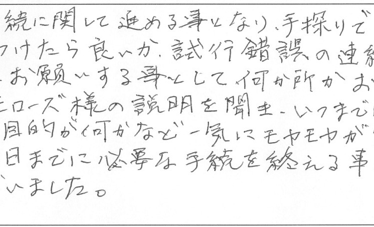 お陰様で期日までに必要な手続を終える事が出来ました。