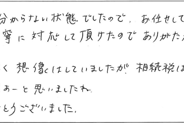 何となく想像はしていましたが、相続税は高いなぁーと思いましたね。