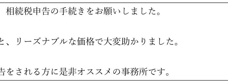紹介して頂いて、相続税申告の手続きをお願いしました。