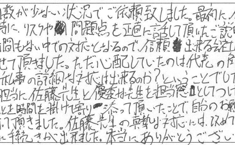 御社には、時間的日数が少ない状況でご依頼致しました。