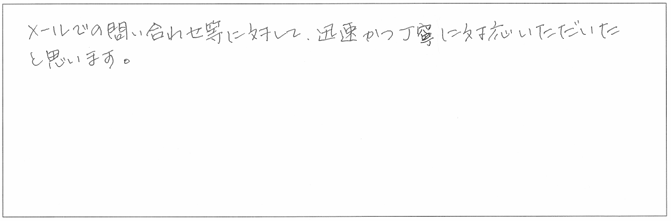 メールでの問い合わせ等に対して、迅速かつ丁寧に対応いただいたと思います。