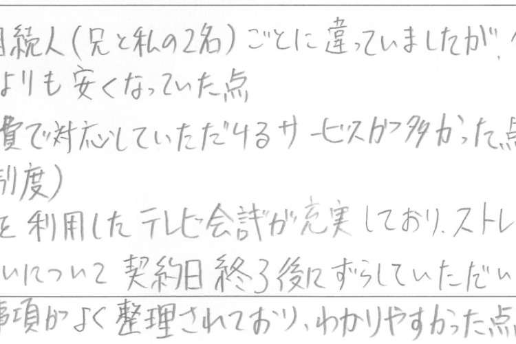 ・相続税が相続人(兄と私の2名)ごとに違っていましたが、合計すると予想していたよりも安くなっていた点
