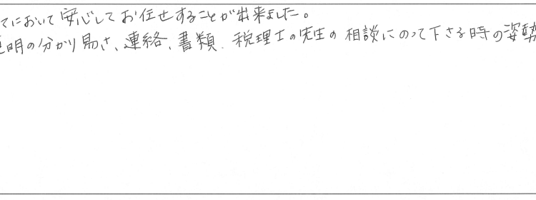 (説明の分かり易さ、連絡、書類、税理士の先生の相談にのって下さる時の姿勢など)