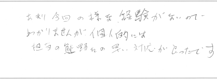 あまり今回の様な経験がないのでわかりませんが、個人的には担当の熊野さんの早い対応が良かったです。