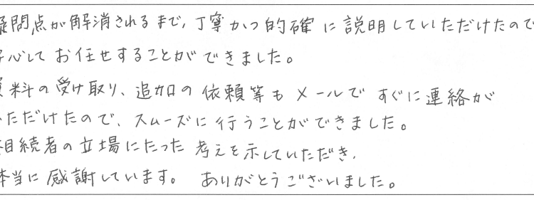 相続者の立場にたった考えを示していただき、本当に感謝しています。ありがとうございました。