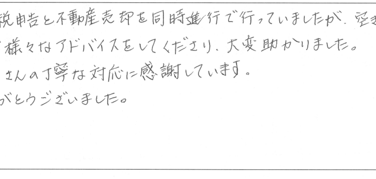 相続税申告と不動産売却を同時進行で行っていましたが、空き家控除のことなど様々なアドバイスをしてくださり、大変助かりました。