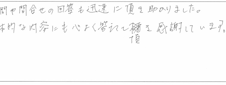 質問や問合せの回答も迅速に頂き助かりました。