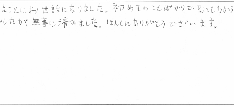 この度はまことにお世話になりました。初めてのことばかりでなにもわからなくて心配でしたが、無事に済みました。ほんとにありがとうございます。
